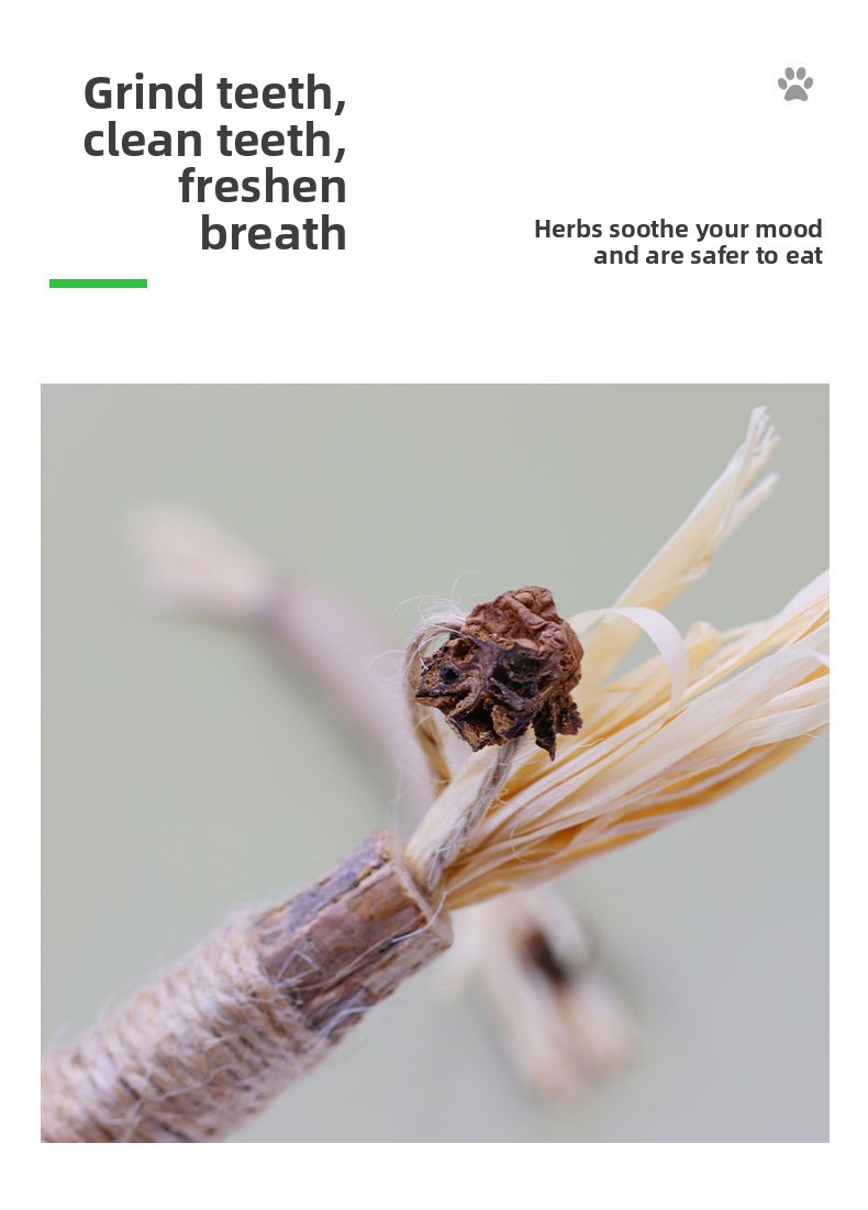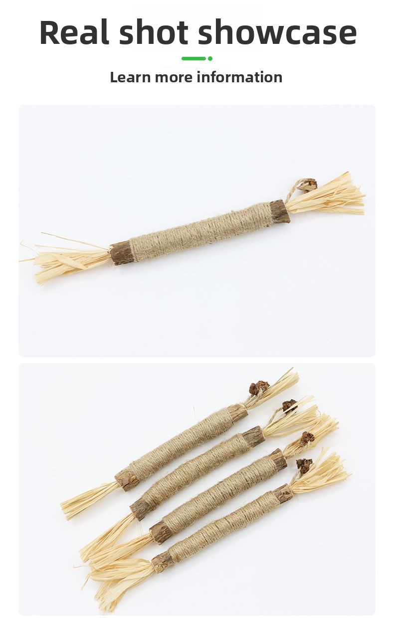 Treat your cat to a natural chewing experience with this silvervine chew toy, crafted from silvervine, gallnut, and raffia grass for safe, plant-based play. As your cat chews and bites, the textured surface helps clean teeth and reduce plaque buildup, supporting better oral hygiene while they enjoy themselves.